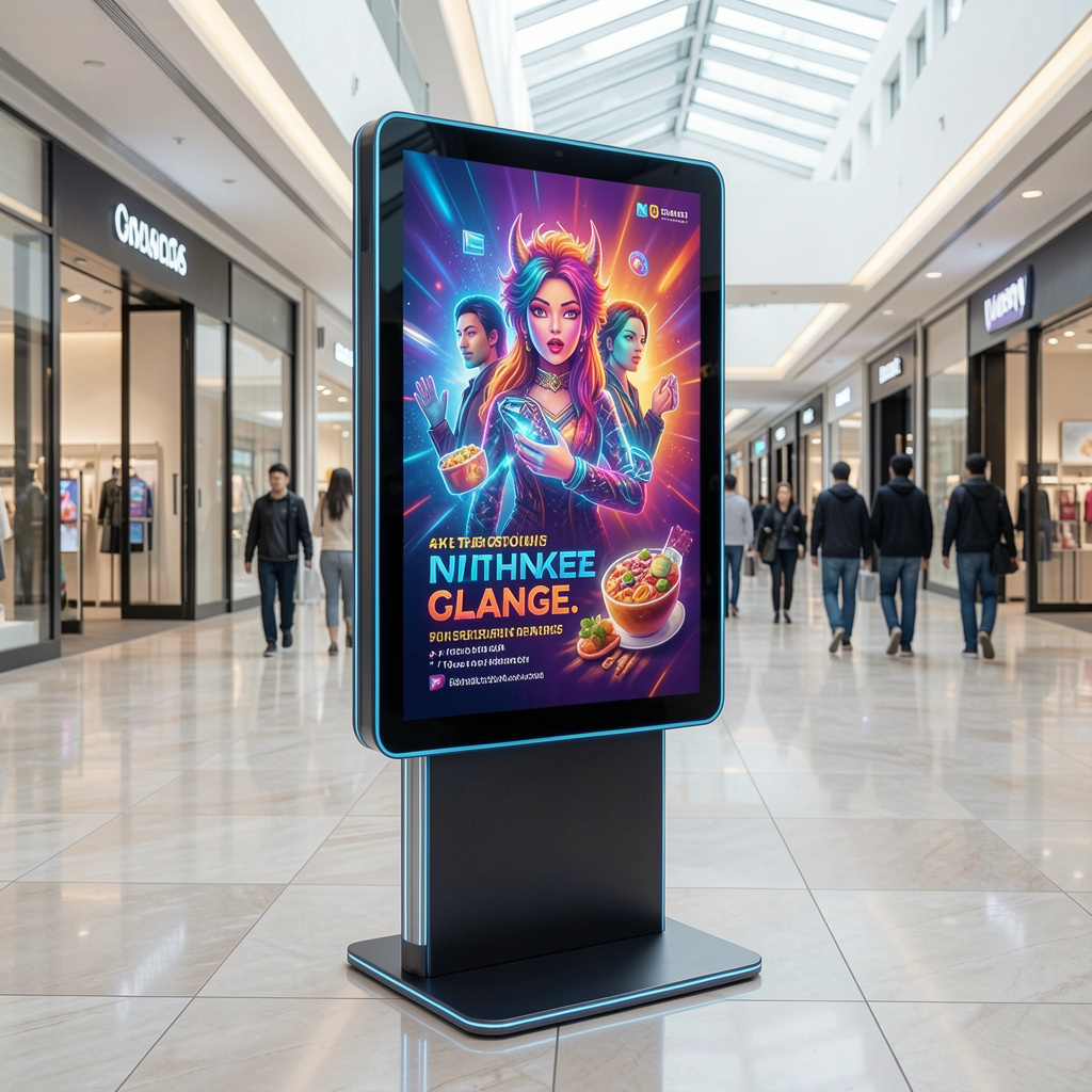 A Kiosk Display is a freestanding digital signage system designed to display advertisements, information, or interactive content in public spaces. These displays are widely used in shopping malls, airports, retail stores, hospitals, hotels, and corporate offices to engage customers and provide digital communication.